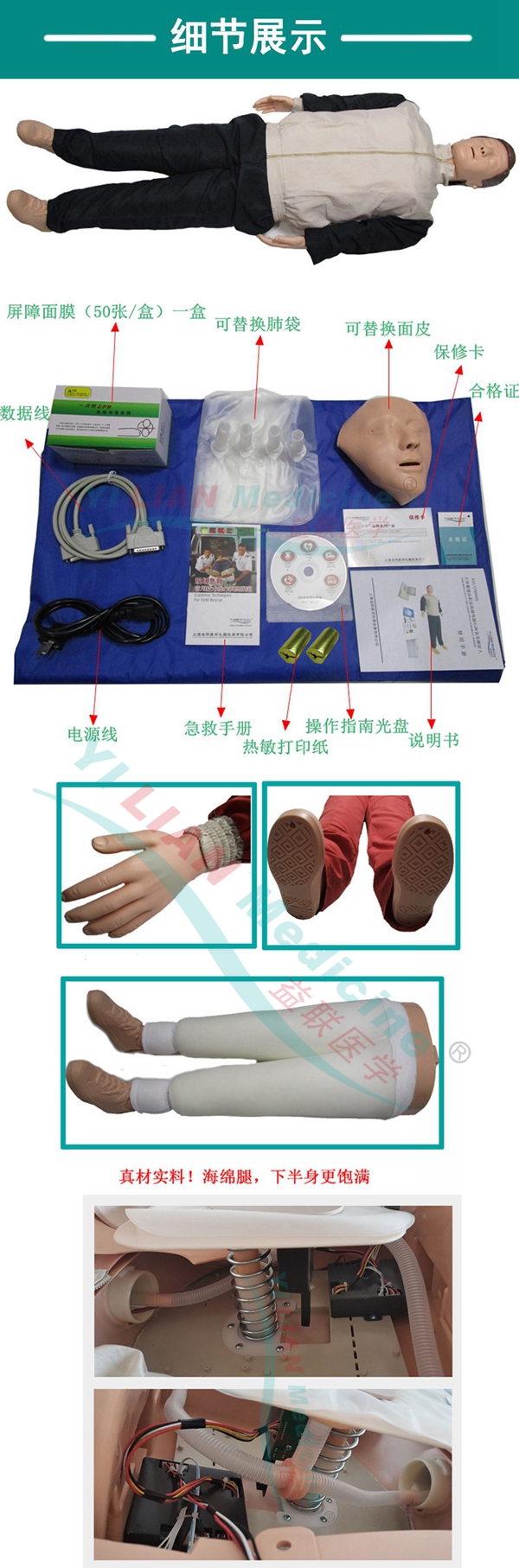 ■ 模擬人解剖特征明顯,手感真實(shí),膚色統(tǒng)一,形態(tài)逼真,外形美觀。